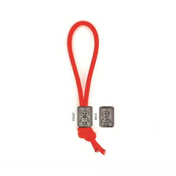 We suggest feeding the lanyard loop in through the front face of the tool, then looping the bead through.
